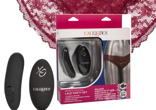 Remote Control Lace Panty Set - S/ M - Burgundy
