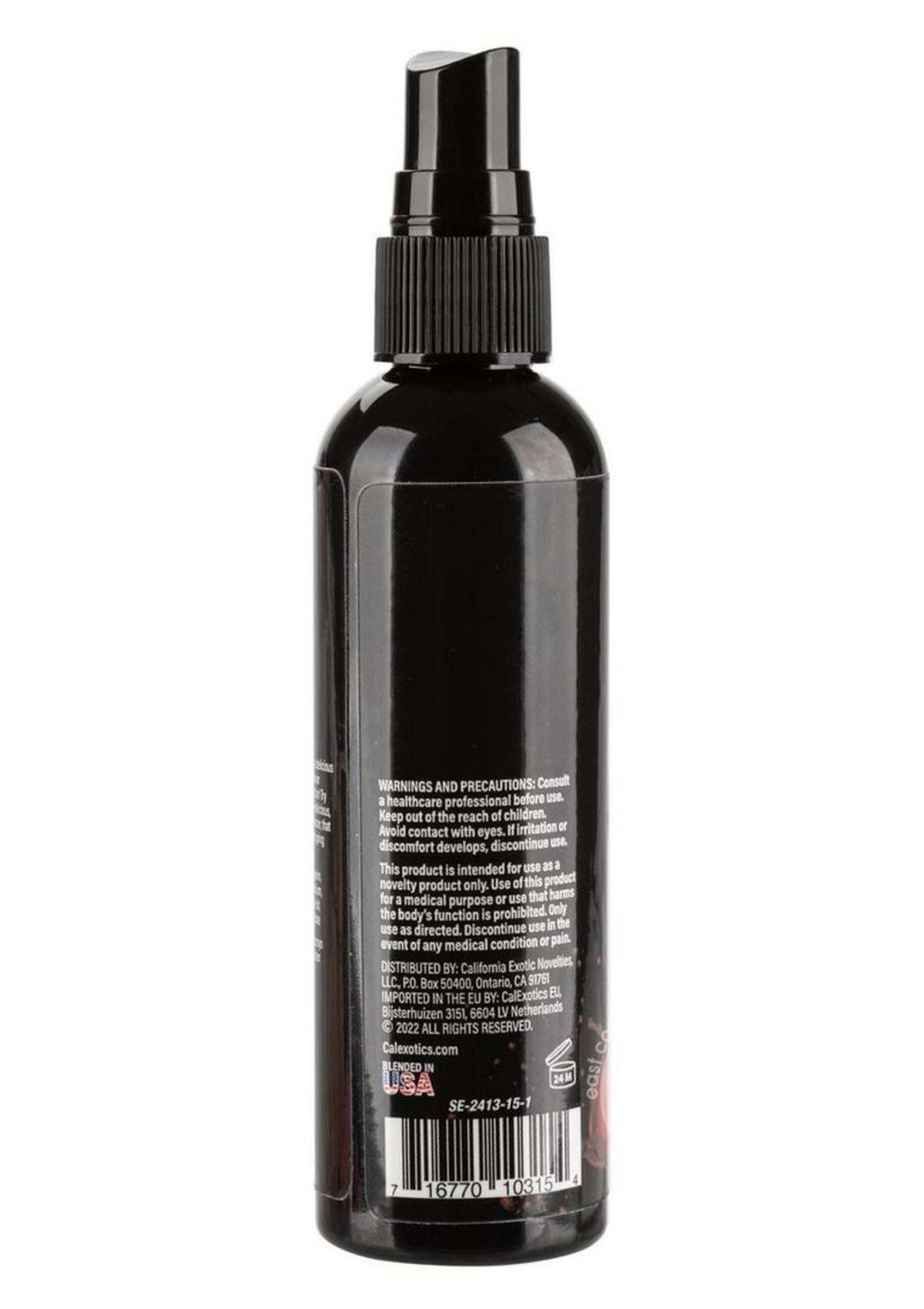 The deliciously naughty spray enhances any oral experience with a burst of cherry flavor in every taste. The playful spray is sure to arouse the senses and lead to the tastiest foreplay. Expertly created by the sexual health experts at CalExotics, the water-based formula is cruelty-free and eco-friendly. Blended in the USA.