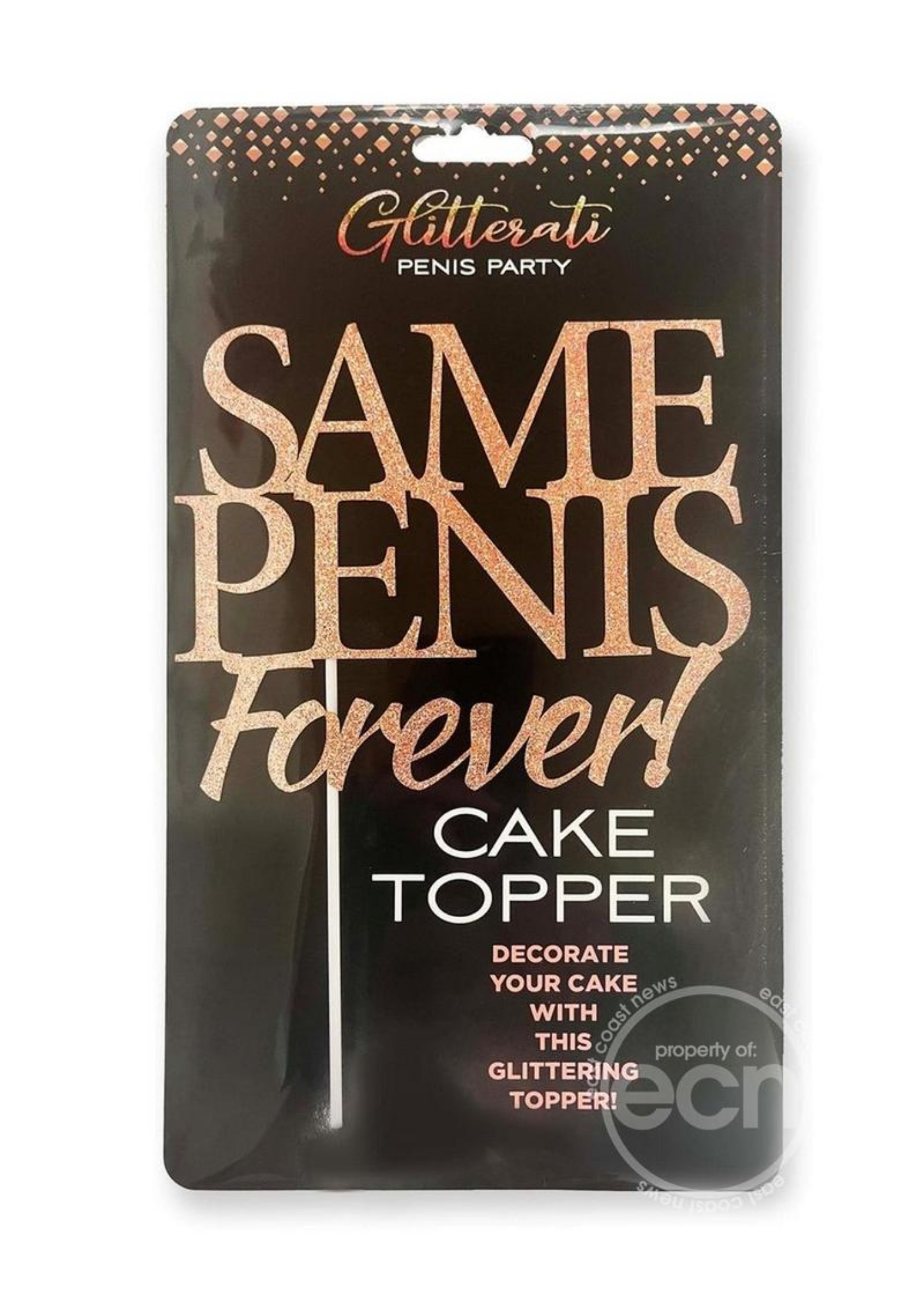 Same Penis Forever Cake Topper is a glittering rose gold 6 inch cake topper on non shedding glitter paper. This elegant cake topper is a great accessory for a bachelorette party and is our newest addition to the Glitterati Penis line of bachelorette party goods. * This product is flammable and should not be used near flame.