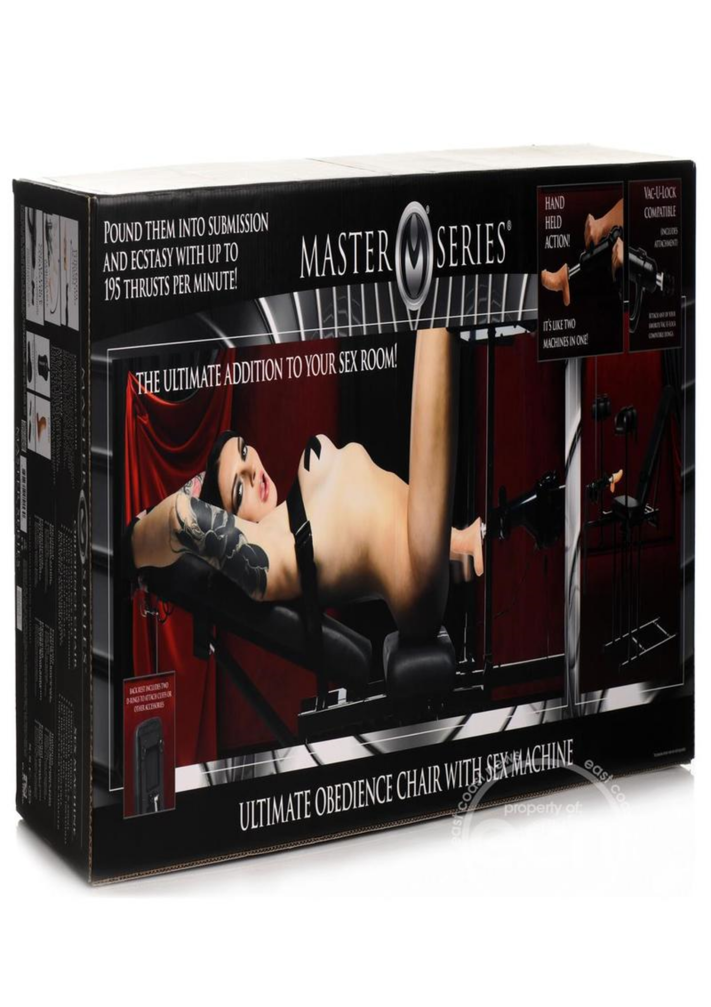 The chair alone is enough for a fantastic evening of sexy play, but add to it the compatible, completely detachable sex machine that allows you to put on a show for your partner or to enjoy it at home alone! This powerful thrusting dildo is made out of TPE and has an RPM of 195! Use the corded controller by holding it in your hand as you're strapped into the chair and adjust the speed manually so you can get exactly the sensations you want! The machine can be plugged into a wall outlet or extension cord so you can enjoy full power all the time!